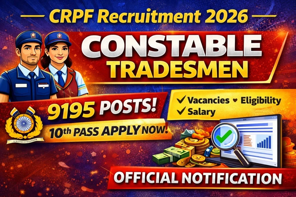CRPF Constable Vacancy 2026 Apply Online : 9195 पदों भर्ती, 10वीं पास के लिए सुनहरा मौका! CRPF Constable Vacancy 2026 […]