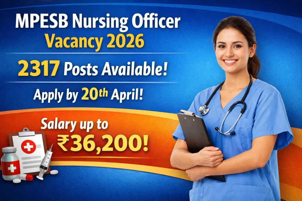 MPESB Nursing Officer Vacancy 2026 का नोटिफिकेशन जारी हो चुका है। इस भर्ती के तहत कुल 2317 पदों पर आवेदन